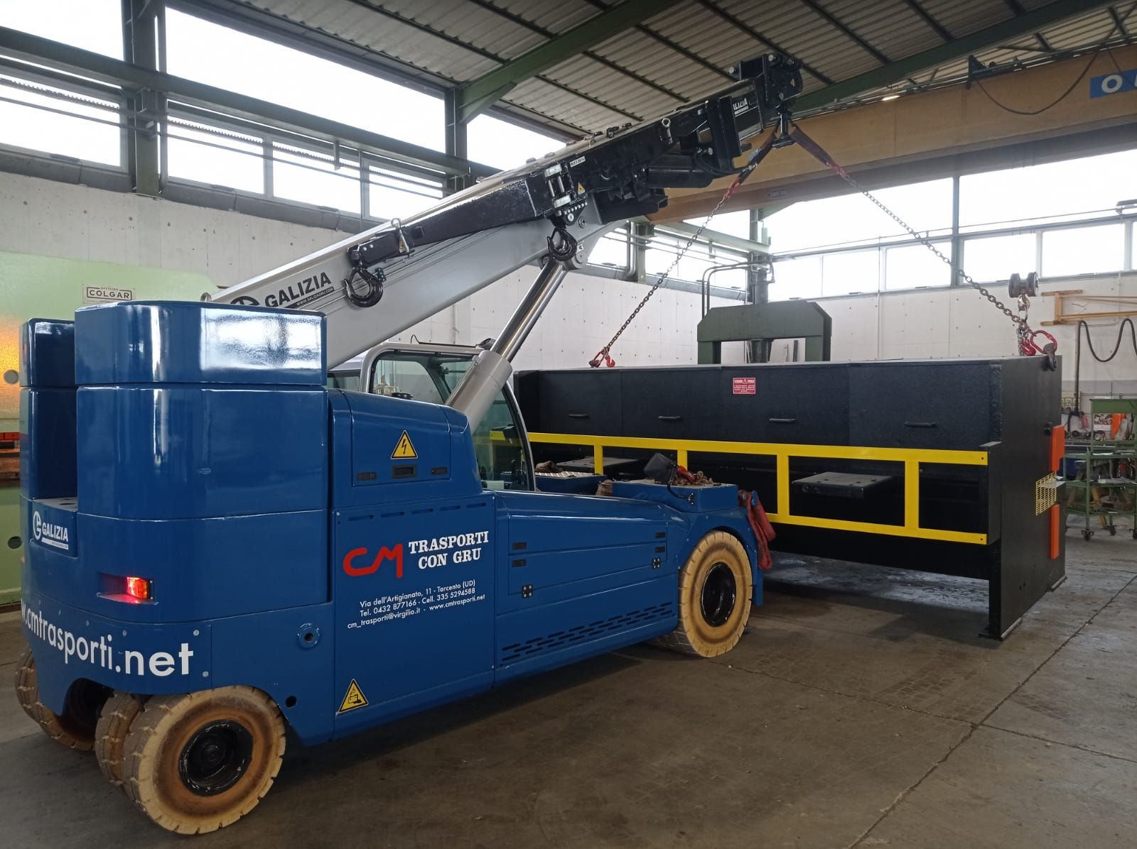 A Tarcento, in provincia di Udine, C.M. Trasporti srl garantisce servizi accurati anche per la movimentazione di macchinari e materiali, facendo affidamento su due macchine semoventi elettriche per sollevare fino a 42 tonnellate e traslare con il peso al gancio. Il personale della ditta è in grado di operare all’interno di stabilimenti, lavorando anche negli spazi più angusti, con macchine operatrici semoventi elettriche senza emissione di fumi ed a basso livello di rumorisità. Se volete saperne di più, chiedere una consulenza, un sopralluogo o un preventivo gratuito non esitate a chiamare lo staff.